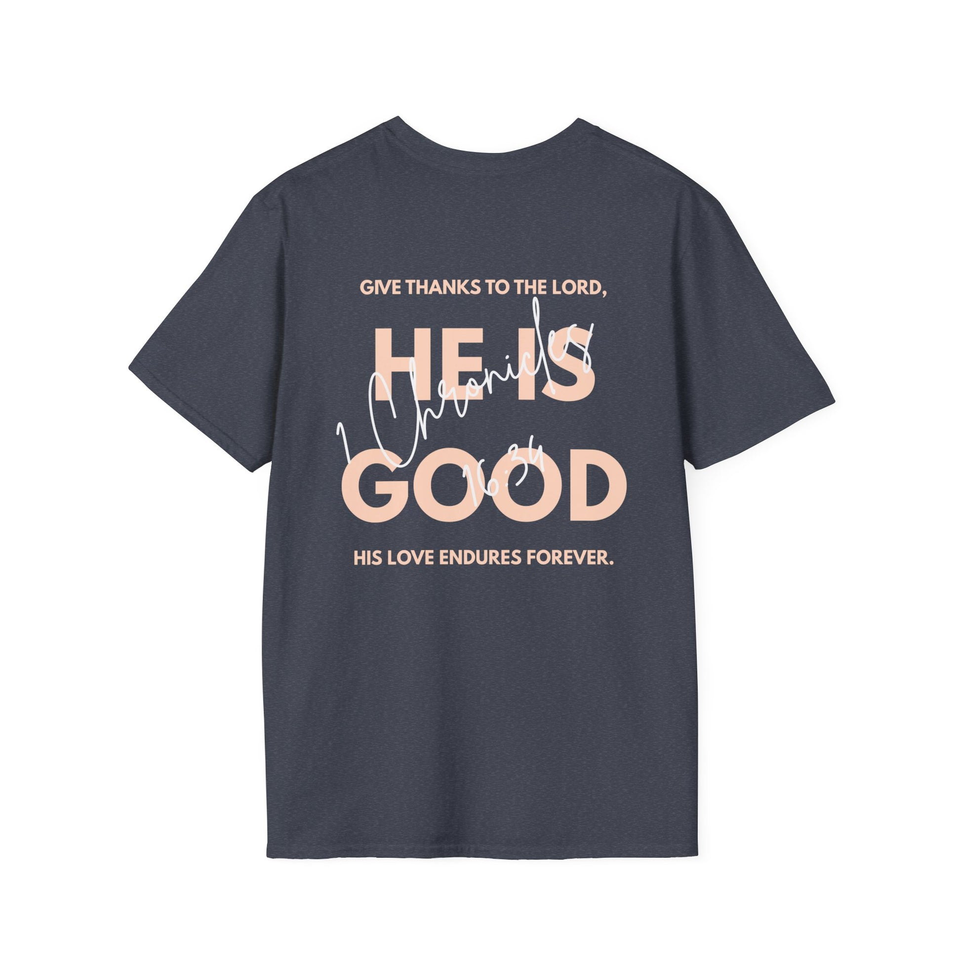 Introducing a stylish and versatile "He is Good" T-Shirt that radiates positive vibes and comfort. This breathable shirt, made from ethically sourced materials, is perfect for anyone looking to express their faith with style. The clean and modern design makes it an ideal choice for daily wear, whether you're at church, running errands, or spending time with family. Celebrate special occasions such as Easter, Christmas, or any casual gathering with this meaningful piece of clothing. Its classic fit and lightweight feel ensure it’s perfect for all-year-round wear, making it a great gift for friends and loved ones who appreciate both style and spirituality.