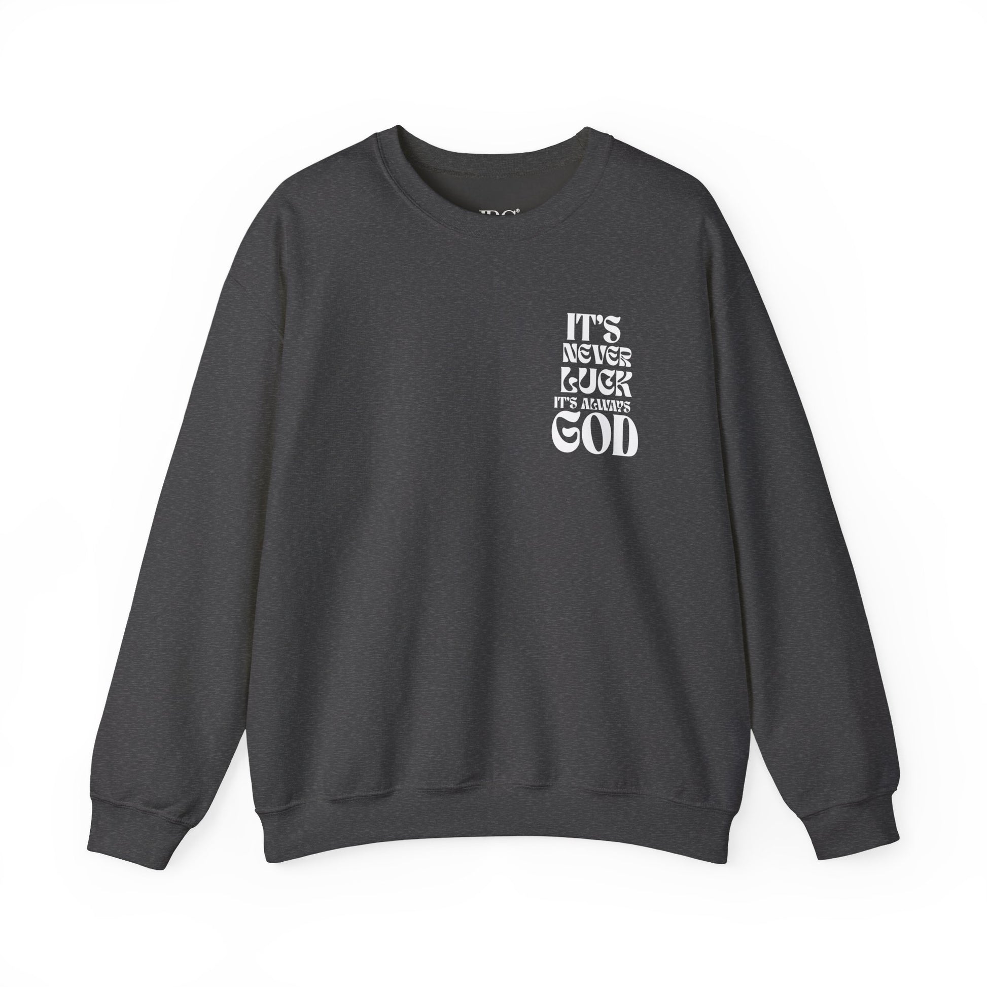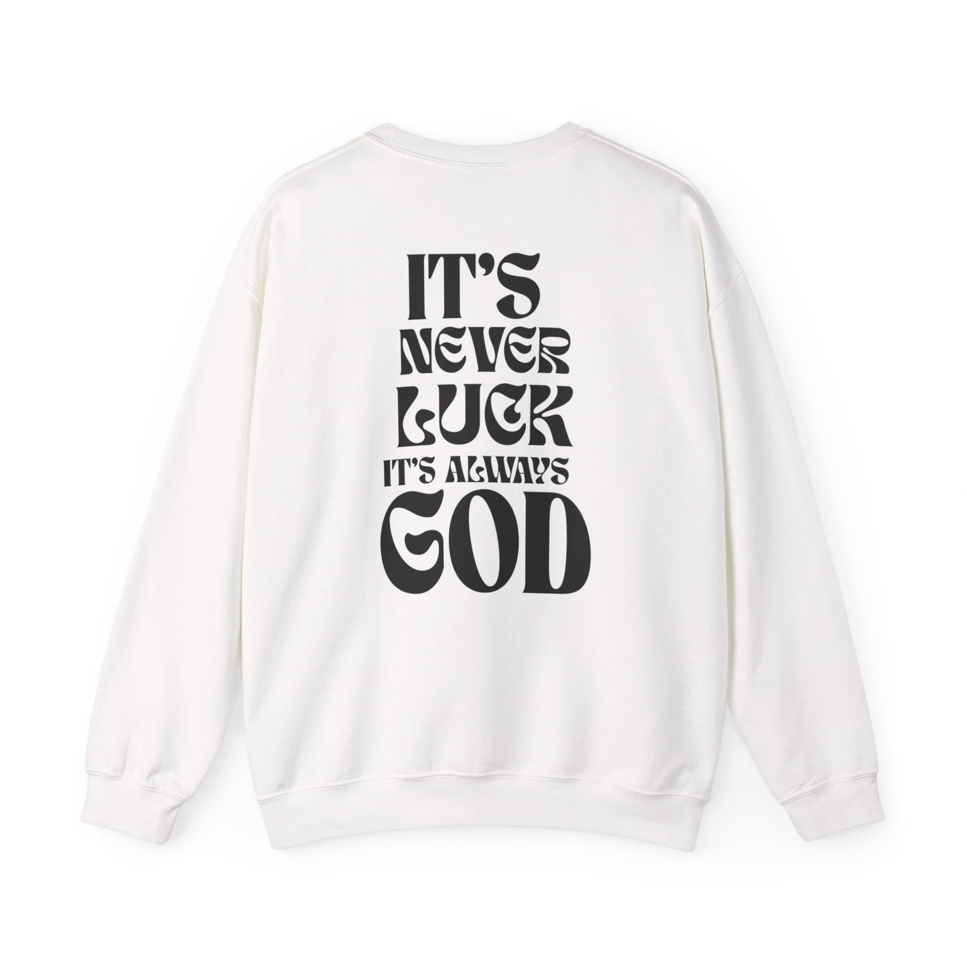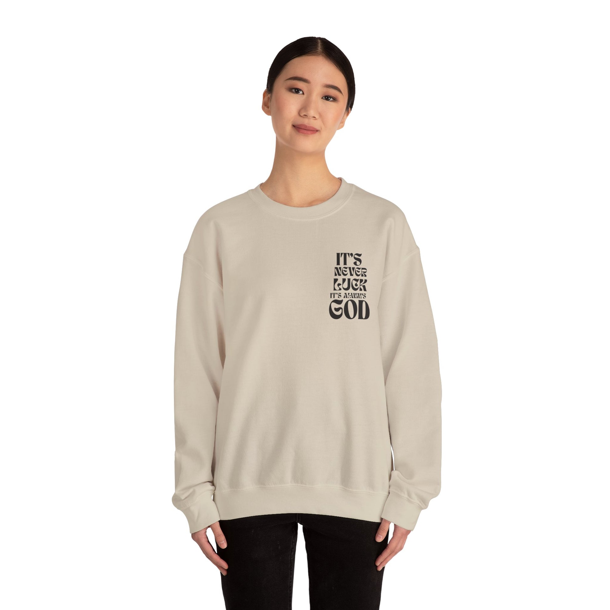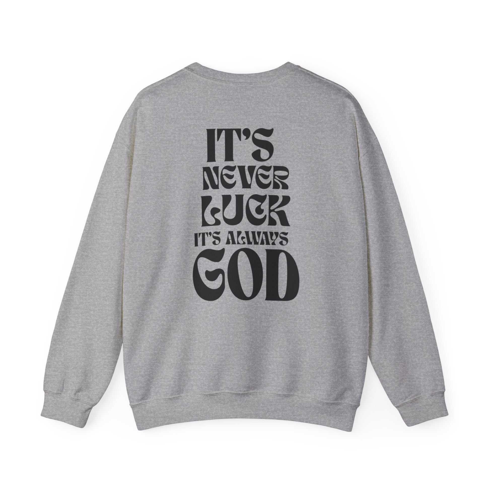 This unisex heavy blend sweatshirt features a powerful message - 'It's never luck, it's always God. God's way is the only way.' It is designed to be worn loud and proud, offering a sense of faith and confidence to the wearer. Perfect for those who want to showcase their belief in God and rely on His guidance. Ideal for religious holidays, church events, and everyday wear for anyone seeking spiritual strength.
